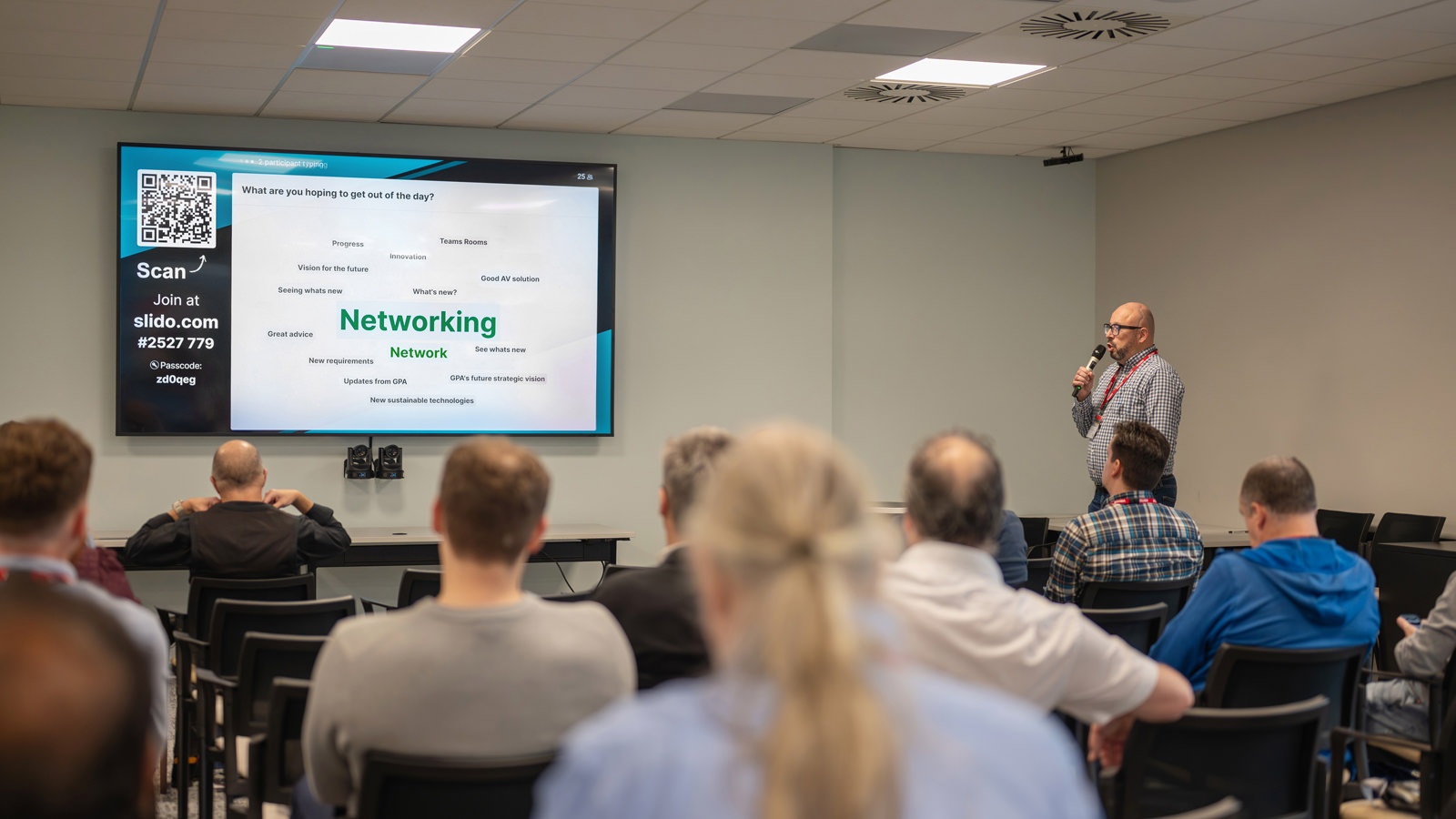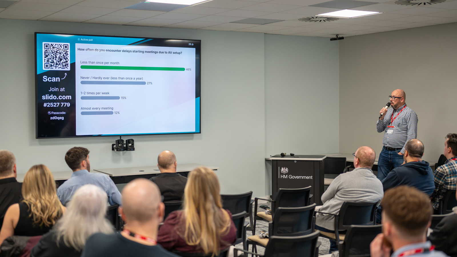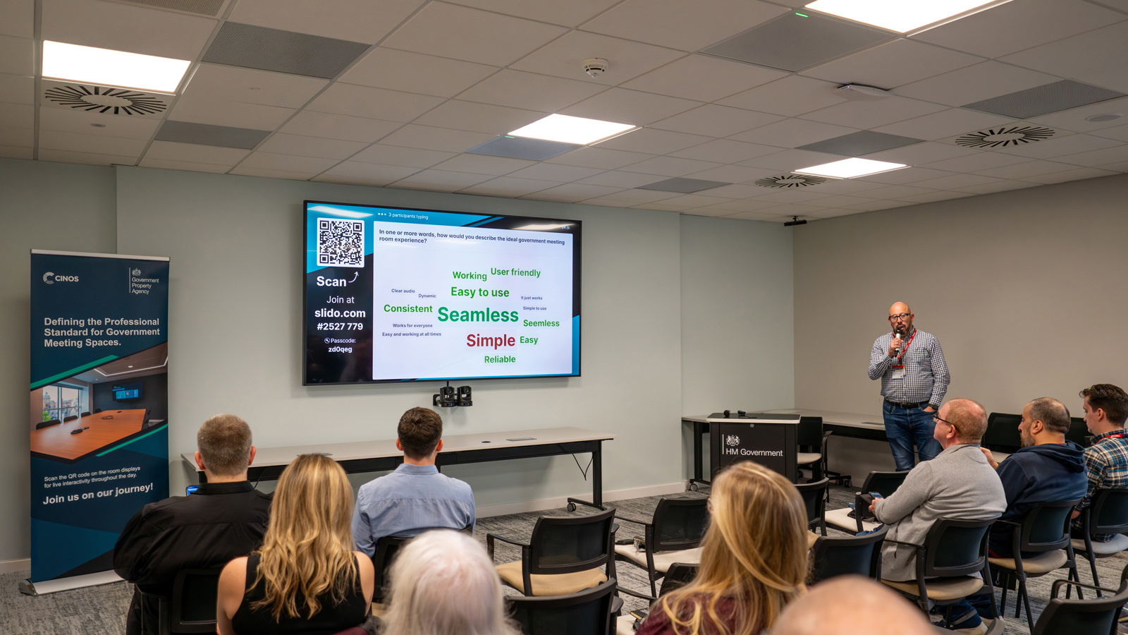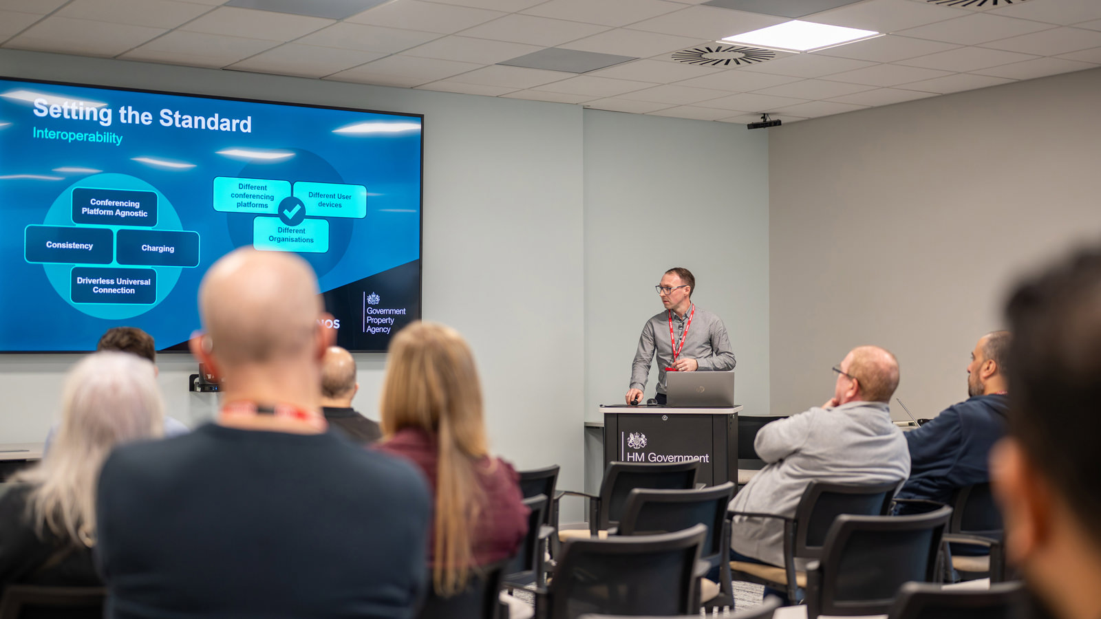 With Standards Version 3 currently being rolled out across the GPA estate, it was encouraging to hear how closely attendees’ priorities aligned with the principles underpinning the standard. Ed Williamson’s explainer video expanded on these foundations, illustrating how the single universal cable reduces clutter and enables users to start meetings straight away. Attendees also saw how support is readily available via the digital user guide on the meeting room screen and gained further insight into the sustainability and security principles that sit at the heart of Standards Version 3.