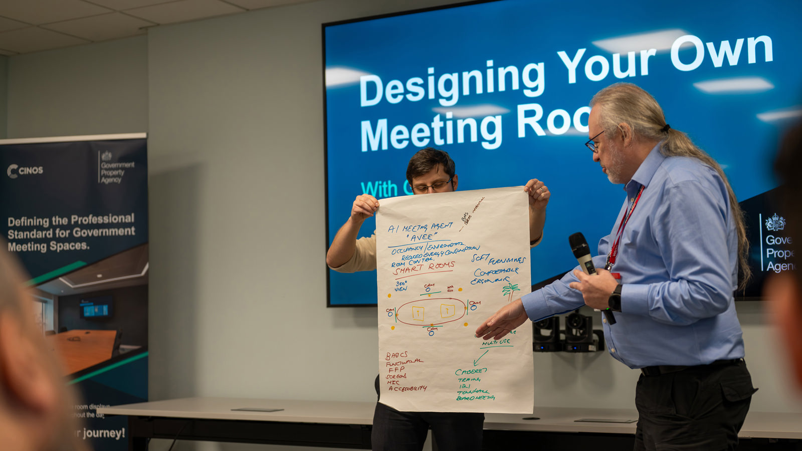 Interactivity played a central role throughout the event, giving Cinos and the GPA meaningful feedback from the people who use government meeting rooms every day. Breakout sessions offered attendees the chance to experience Standards Version 3 first-hand, while a ‘build your own meeting room’ activity revealed valuable perspectives on what users expect from their spaces. The collaborative discussions, Q&As, and fireside chat that followed helped deepen this understanding, adding further clarity to the insights gathered.