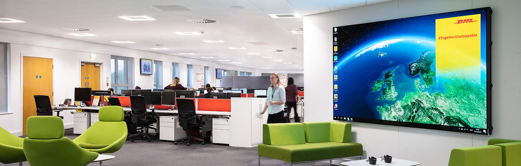 As a result of installing the Samsung LED Wall, the DHL team have enjoyed more productive meetings with potential blue chip clients. They have also benefitted from having a new hub; a space where staff from all different departments can come together, to share news and information to support DHL’s internal and external marketing.